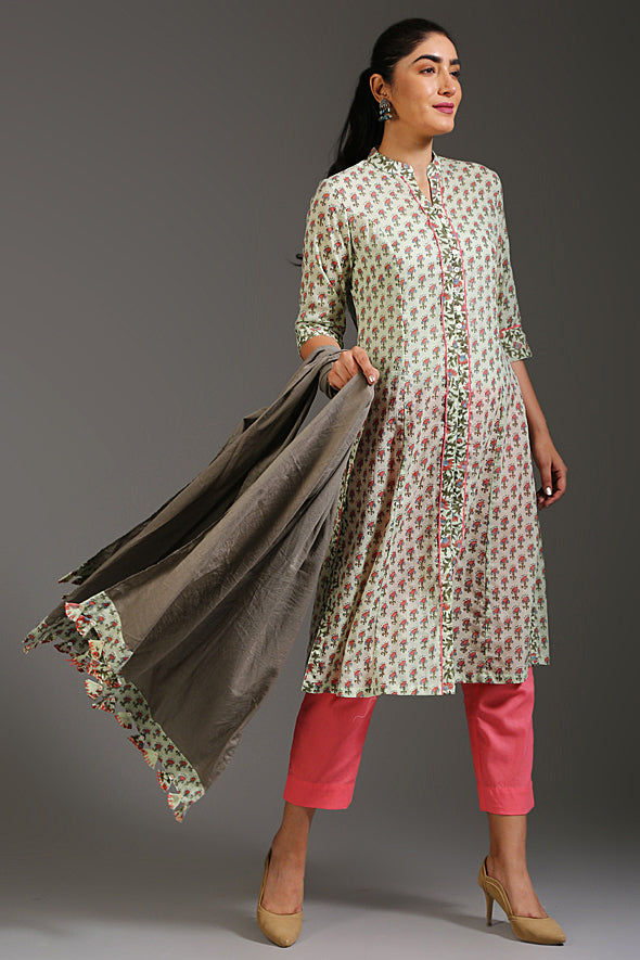 An essential piece to add to your wardrobe! Complete your kurta-pajama ensemble with this cotton dupatta that has hand block printed edgings & hand detailed tassels.