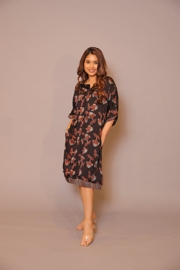 Immerse yourself into the artistic elegance of our Fish Ajrakh Dress, a fusion of traditional charm and contemporary style. Inspired by aquatic motifs, the mesmerizing Ajrakh prints on this dress create a unique and eye-catching appeal. Designed for both comfort and grace, the thoughtfully crafted silhouette makes it an ideal choice for various occasions. Upgrade your wardrobe with the distinctive design and cultural richness of the Fish Ajrakh Dress, seamlessly blending tradition with modern fashion.
